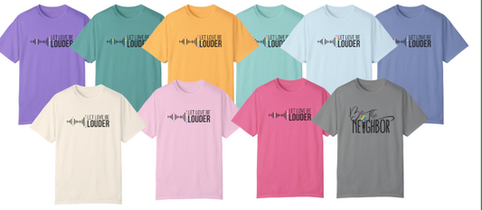 Love Louder -ADULT Comfort Colors T-shirt - Be The Neighbor