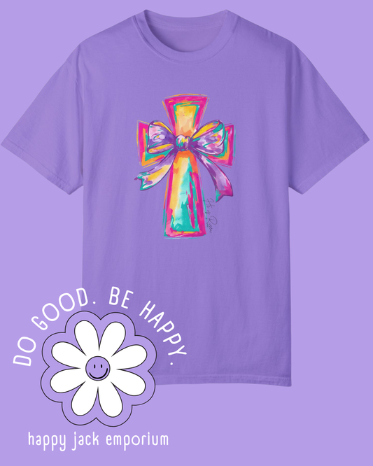 He is Risen - Easter - Brushstroke Cross - Comfort Colors Tshirt