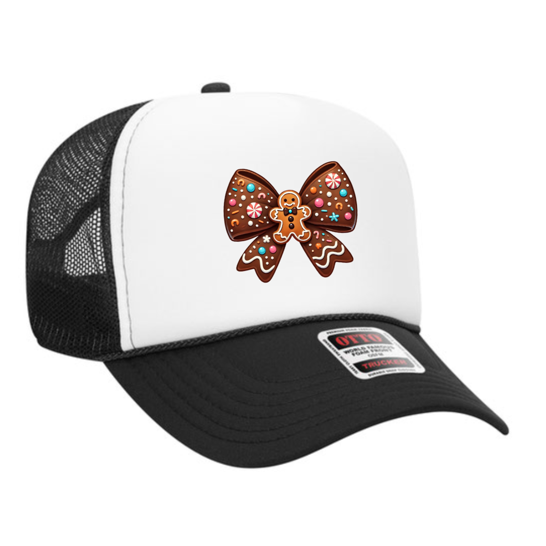 Adorable, sweet gingerbread bow design on a trucker hat! So cute for bakingHOLIDAY COLLECTION LAUNCH---PRE-ORDER this hat between November 1-7 and it will ship by November 12. After November 12, hats will ship within 3-5 business days of order. Order by December 8 for Christmas delivery.